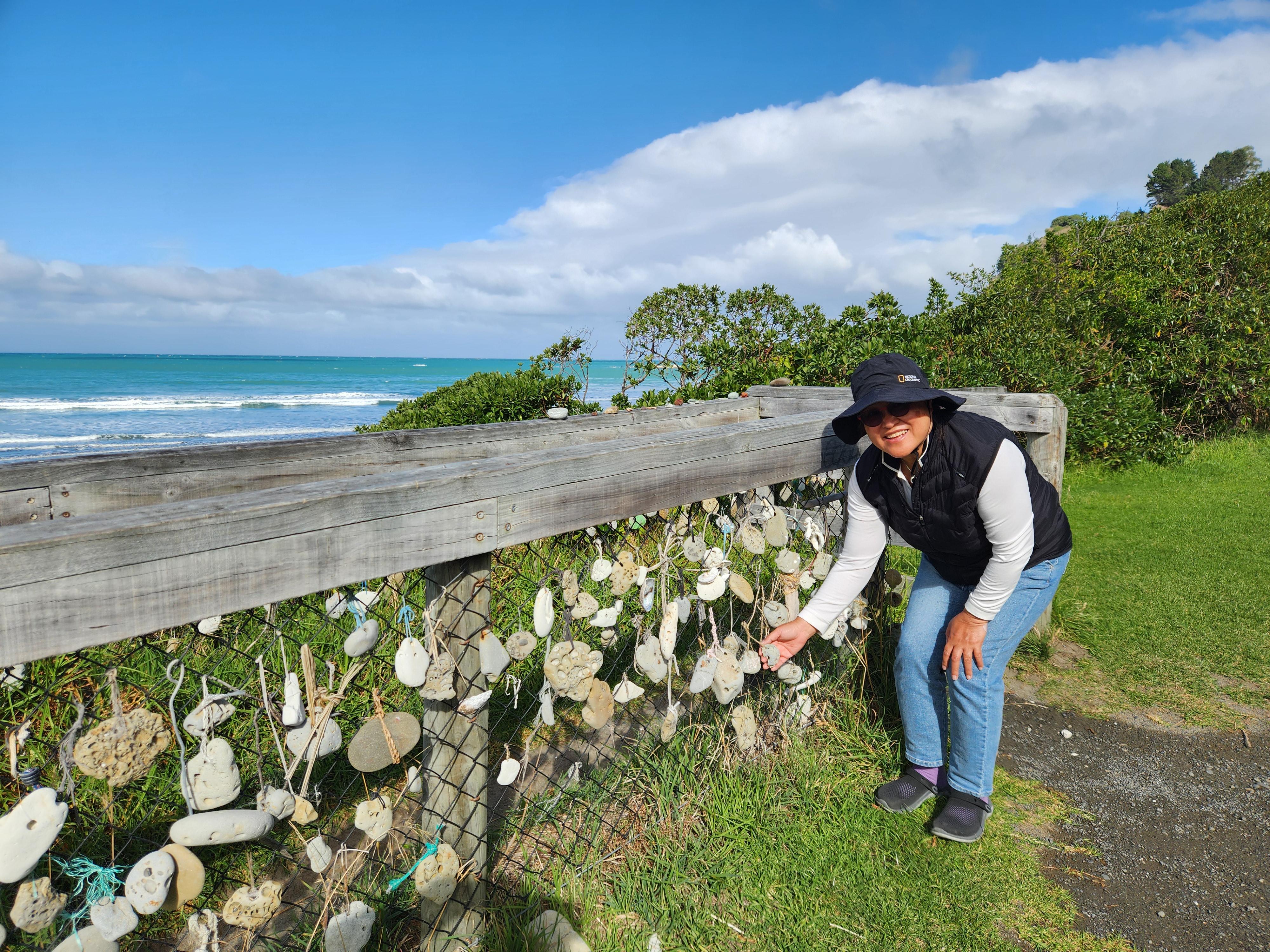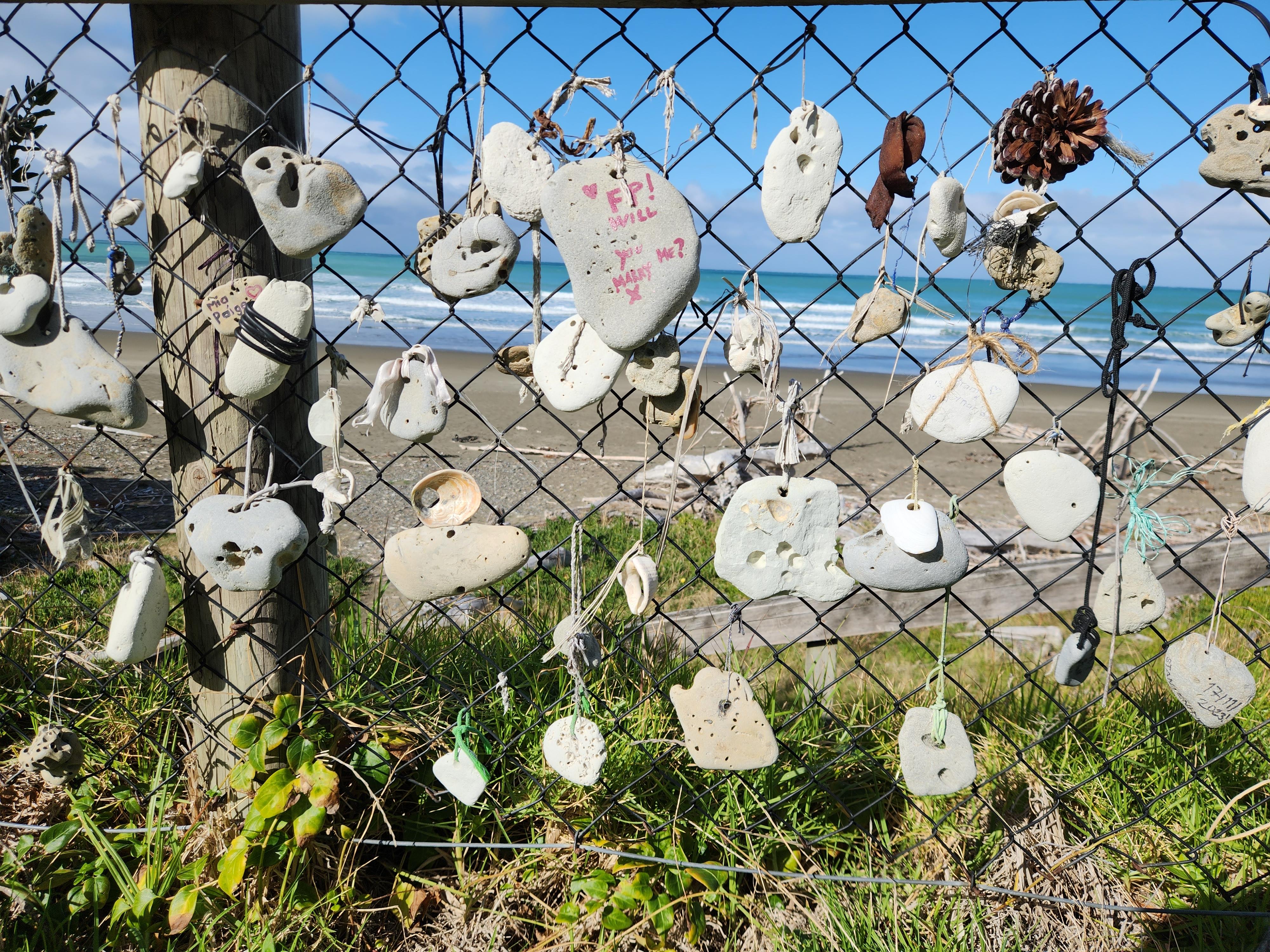 해안에서 올라오는 길 옆에 작은 돌이 매달려 있었다. 돌에는 하트 표시와 이름이 그려져 있다. 열쇠 대신 작은 구멍이 난 돌을 이용해서 걸어 놓은 것이다. 친환경적이다.