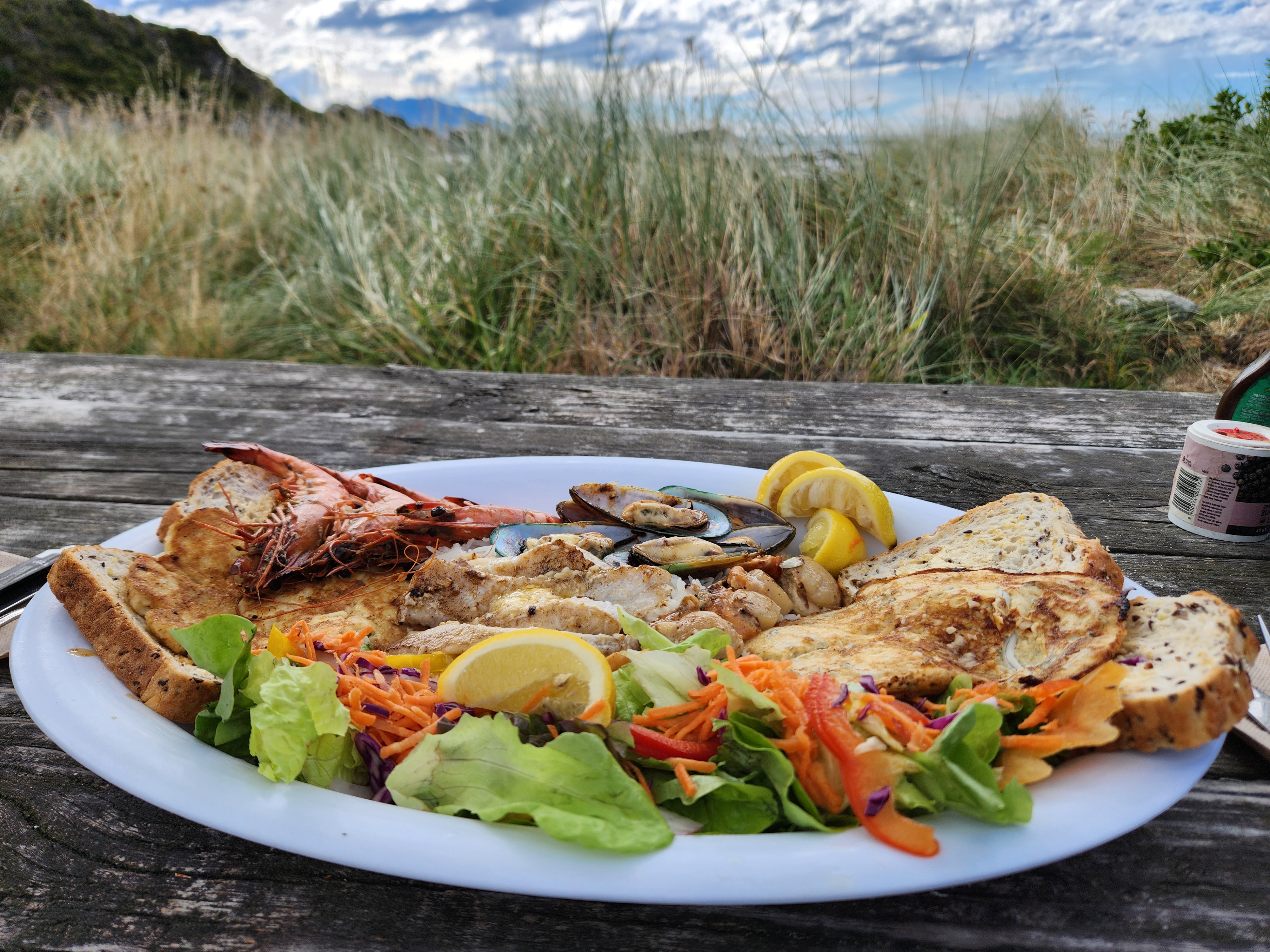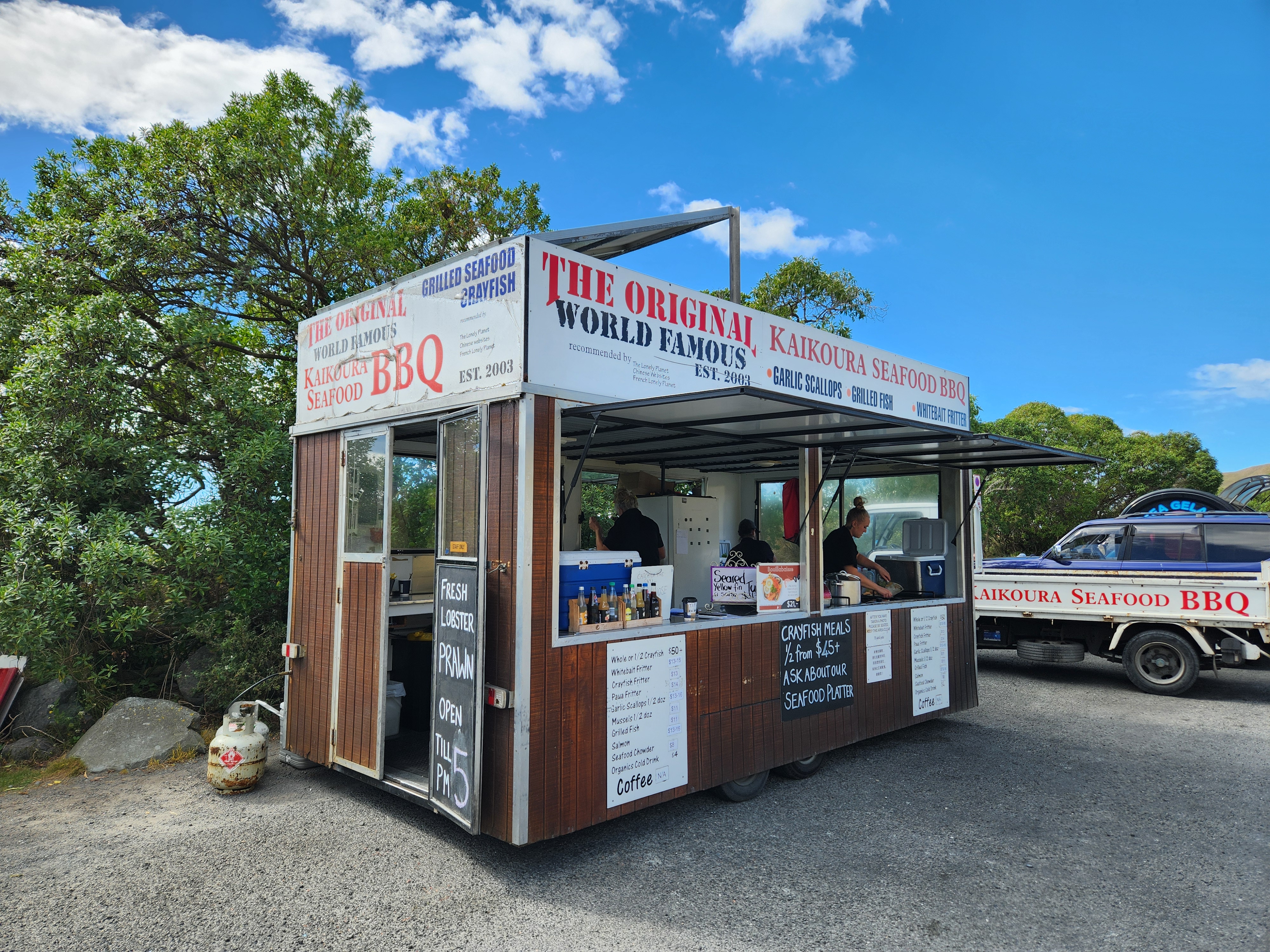 오늘의 주 목적지를 찾아갔다. 카이코우라 BBQ 키오스크이다. 반도의 북쪽 바닷가에 있었다. 크레이피시 요리로 유명해진 곳이다. 푸드트럭이다. 안에서는 분주하게 음식을 준비하고 있었다. 기대를 품고 주문을 하려하니 이번 주는 크레이피시가 없단다. 2월에서 5월 사이가 변태와 짝짓기 기간이어서 크레이피시는 바다 깊은 곳으로 이동한다. 그래서 물량이 적다고 했다. 하필 우리가 간 날이 장날이었다. 가장 많이 잡히는 기간은 6월에서 11월 사이이다. 여러 가지 이유로 뉴질랜드 여행의 최적기는 11월인 것 같다.