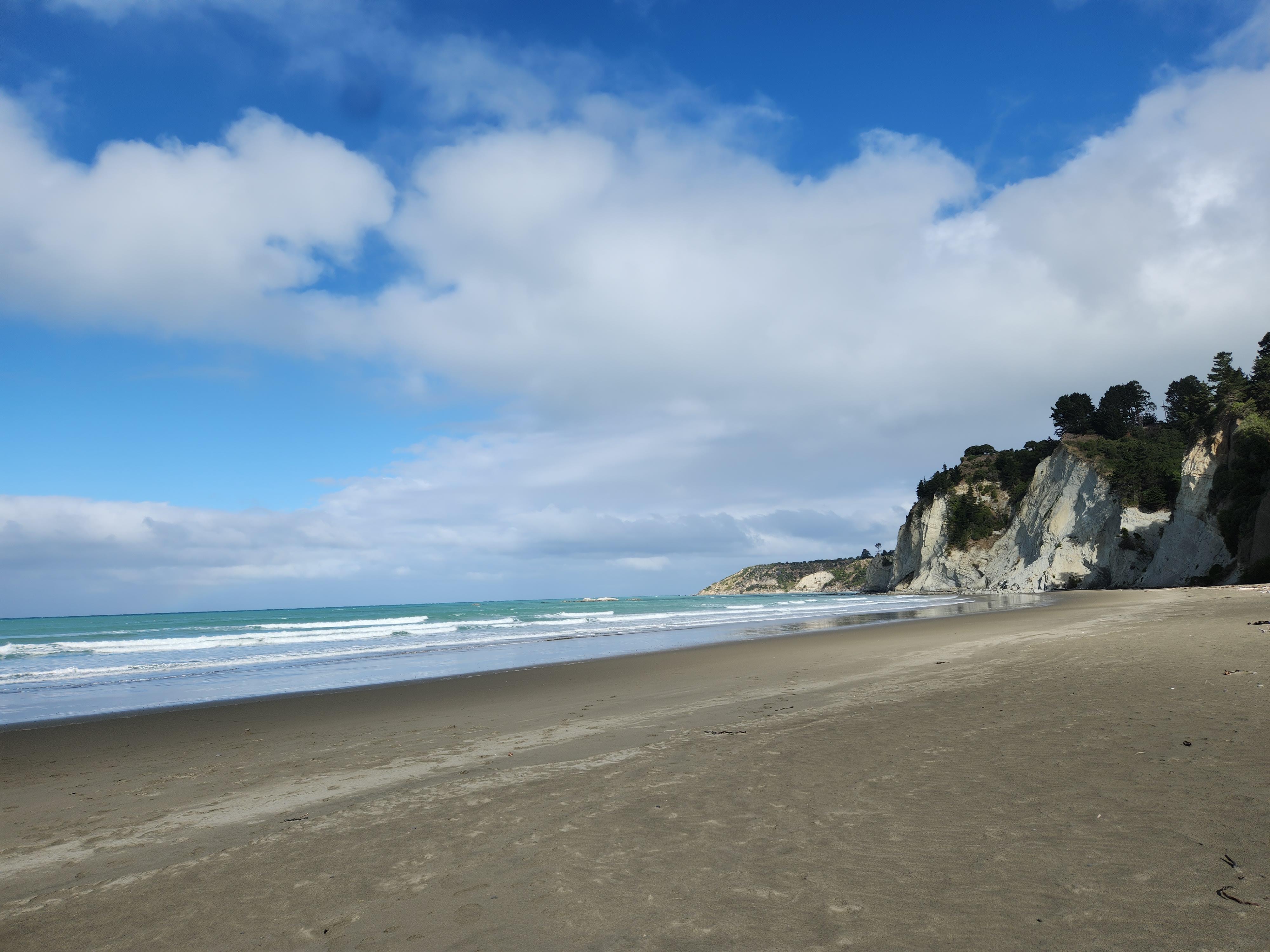 고어베이 비치에 들렀다. 제법 멋진 해변이다. 그런데 거의 사람이 없다. 남쪽에 하얀색 절벽이 보였다. 카시드랄 굴리와 같은 역암층이다.