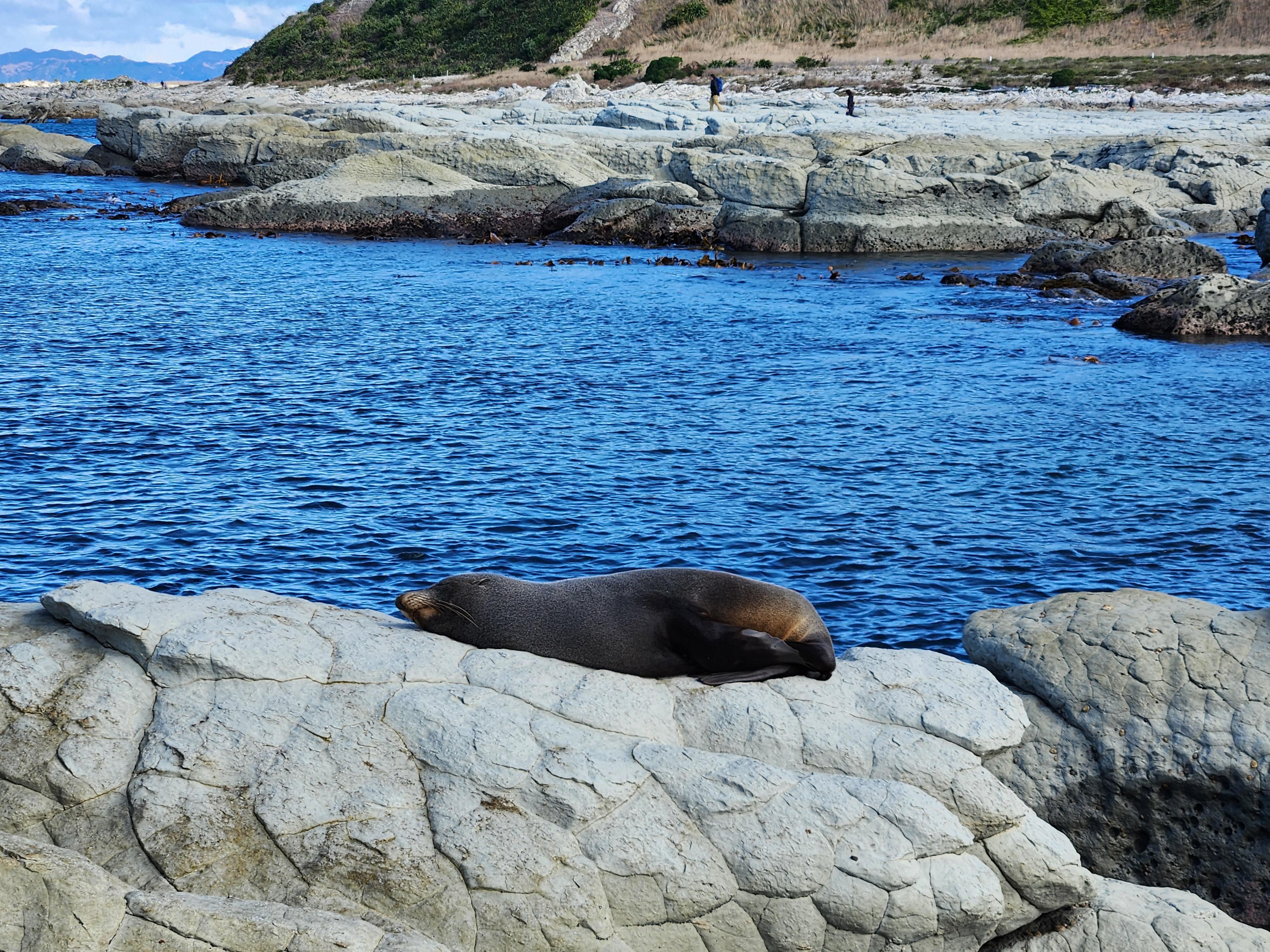 카이코우라 반도의 끝으로 갔다. 물개 서식지와 산책길이 있는 곳이다. 카이코우라는 해양 생물이 많은 곳이다. 고래 관광의 메카이기도 한다. 반도 끝에서 해안을 따라 이어져 있는 산책길은 수리 중이었다. 해안 바위 위에는 멀리 물개들이 보였다.